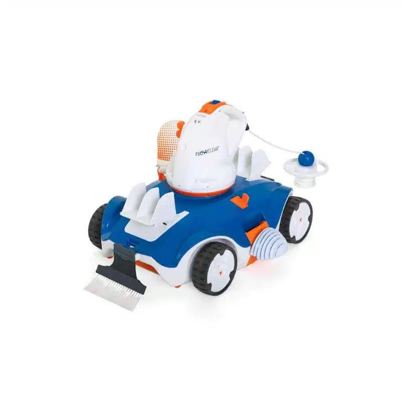 Roboten rör sig på ett självständigt sätt över poolens botten. Den rullar fram på fyra hjul och har ett inbyggt filtersystem som fångar upp smuts och skräp. Styrningen är automatisk med hjälp av sensorer och detta fungerar mycket bra.